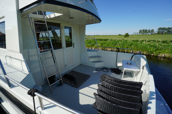 - Fly-Bridge: De hoge fly-bridge op het dak van de kajuit biedt een prachtig uitzicht en extra ruimte om te genieten van de omgeving.