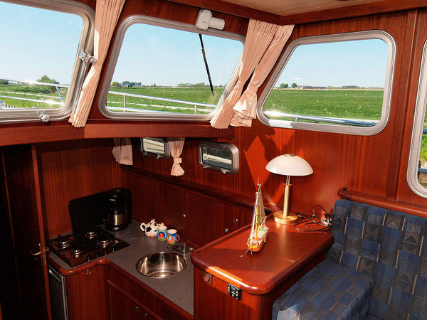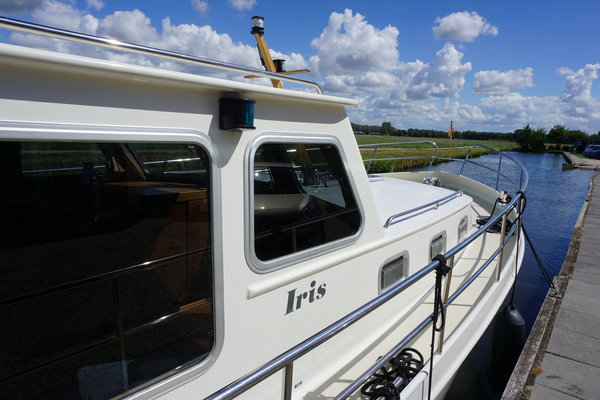 Motorjacht Iris is een stoere boot, ideaal uitgerust voor twee personen. Aan boord kunt u echter nog twee extra slaapplaatsen creëren in de salon. Dankzij de lage doorvaarthoogte (2.50 mtr) zijn ook de binnenwateren van Friesland goed te bevaren. Het jacht is uitgerust met zowel een boeg- als hekschroef voor eenvoudig manoeuvreren.