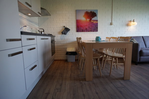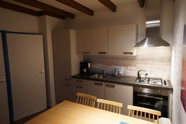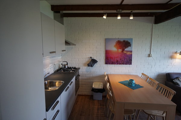 • Begane grond: woonkamr met keuken, badkamer en slaapkamer met 2 x eenpersoonsbed.