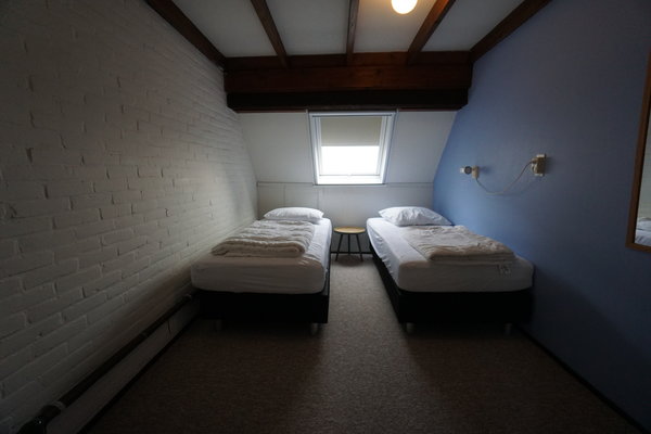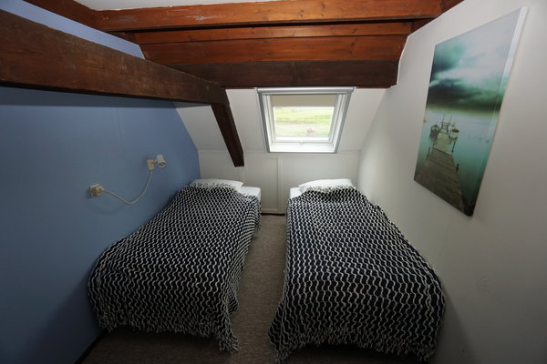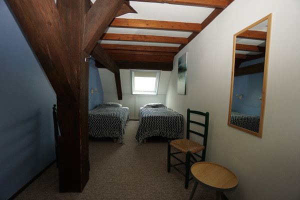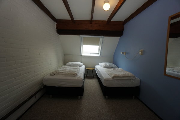 • Boven: Twee slaapkamers, één met 2 eenpersoonsbedden en één met 4 eenpersoonsbedden.