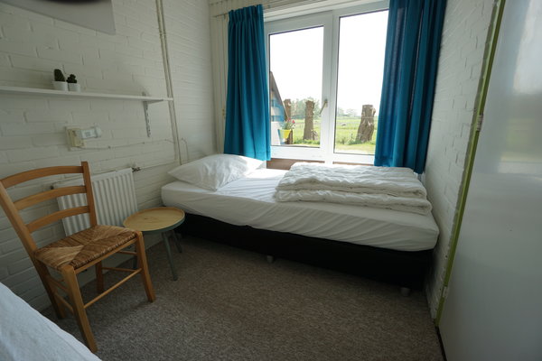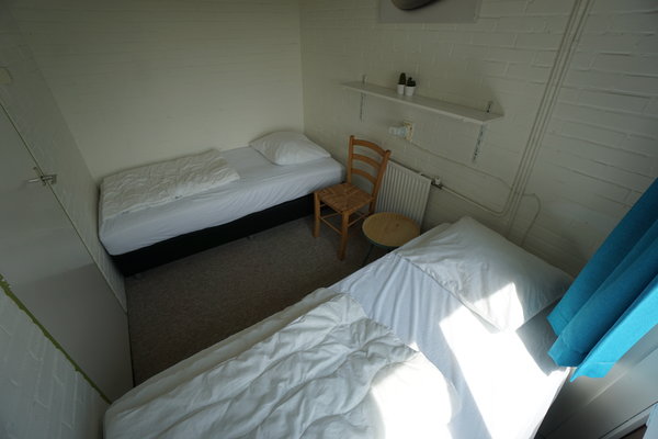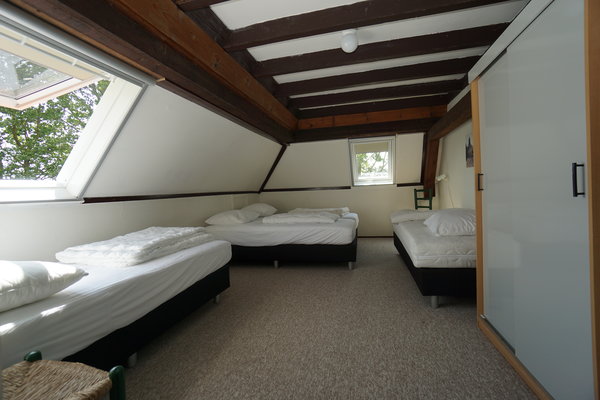 • Boven: Twee slaapkamers, één met 2 eenpersoonsbedden en één met 4 eenpersoonsbedden.