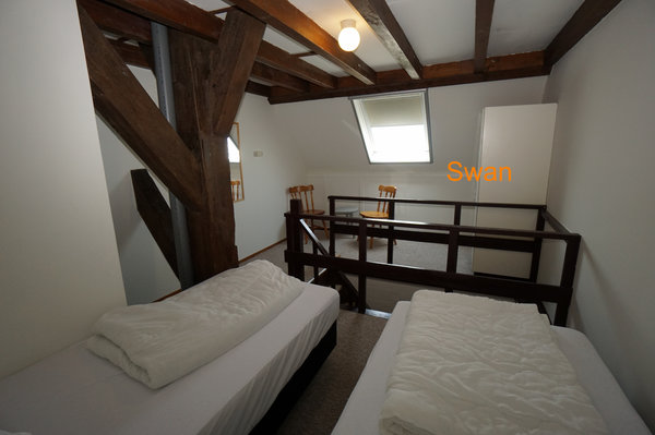 • Boven: Slaapkamer met 2 eenpersoonsbedden.