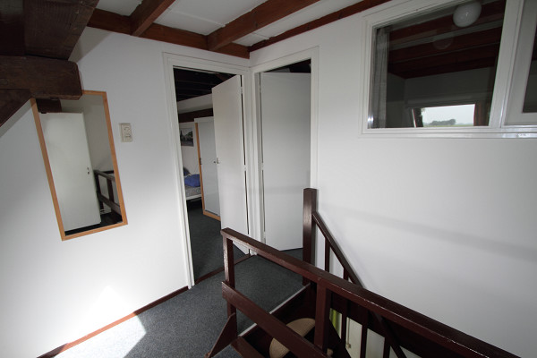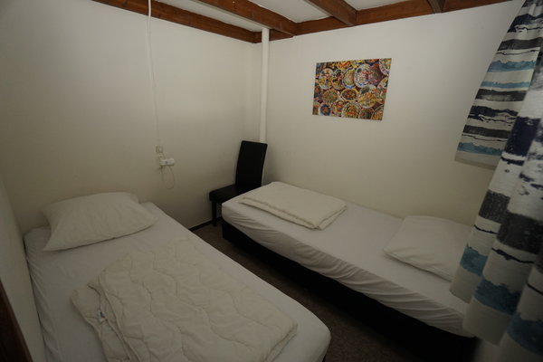 • Boven: Twee slaapkamers, één met 2 eenpersoonsbedden en één met 4 eenpersoonsbedden.